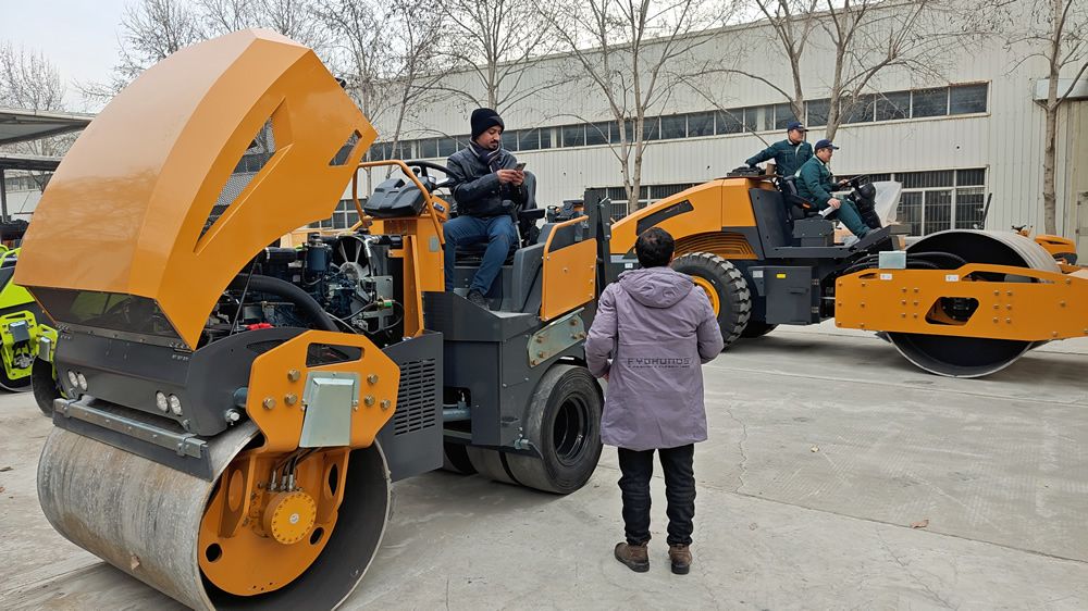 12月24日,某國外客戶2人來我廠參觀考察,在工作人員的陪同下,參觀了我廠生產(chǎn)車間與展廳并試駕小型壓路機(jī),詳細(xì)向業(yè)務(wù)人員了解各個型號的配置與參數(shù),對我廠生產(chǎn)的壓路機(jī)、移動照明車,滑移裝載機(jī)等產(chǎn)品表現(xiàn)出濃厚興趣,初步達(dá)成合作意向