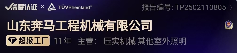 山東奔馬憑借卓越的生產(chǎn)實(shí)力和優(yōu)質(zhì)的產(chǎn)品,榮獲阿里深度認(rèn)證的“超級工廠”稱號,同時(shí)被百度認(rèn)證為“實(shí)力工廠”,充分彰顯了其在行業(yè)中的領(lǐng)先地位。公司專注于研發(fā)與生產(chǎn)小型壓路機(jī)、移動照明車、液壓動力站等設(shè)備,以創(chuàng)新技術(shù)和精湛工藝為客戶提供高效、可靠的解決方案。我們誠摯邀請各界朋友蒞臨工廠參觀考察,親身體驗(yàn)我們的生產(chǎn)流程與產(chǎn)品性能。山東奔馬將以專業(yè)的態(tài)度和優(yōu)質(zhì)的服務(wù),與您攜手共創(chuàng)美好未來!歡迎隨時(shí)聯(lián)系,期待與您合作!全國免費(fèi)服務(wù)電話:400-6537-859